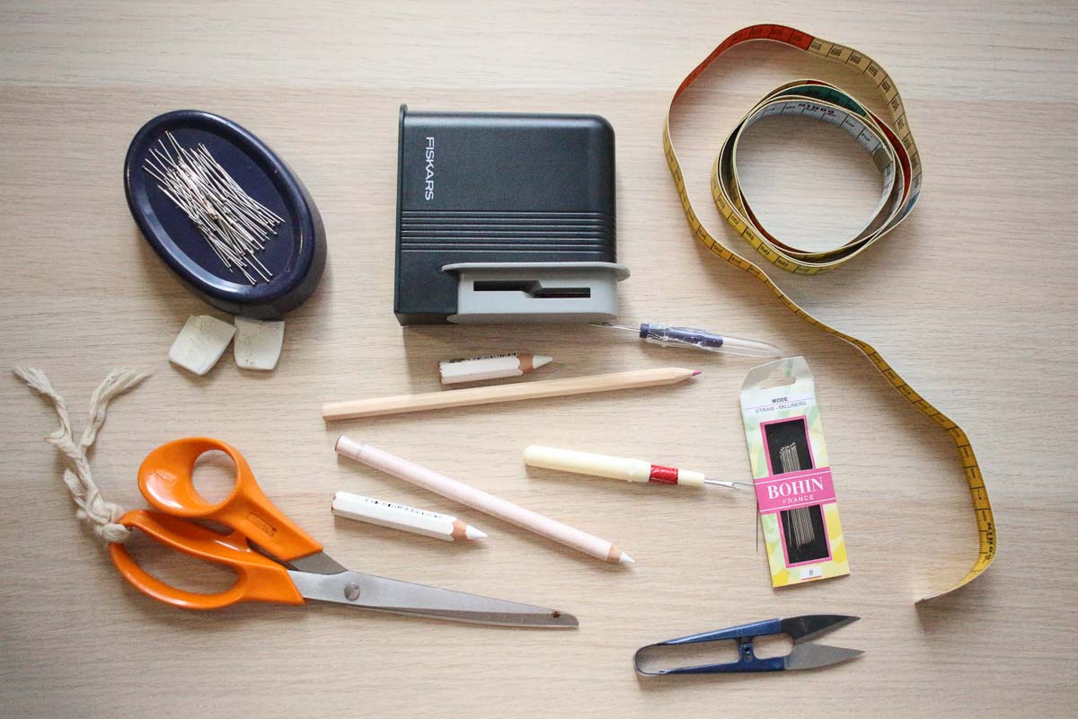 Si c’est simplement retoucher des vêtements (par exemple un ourlet), un simple mètre ruban, une aiguille et du fil suffiront.